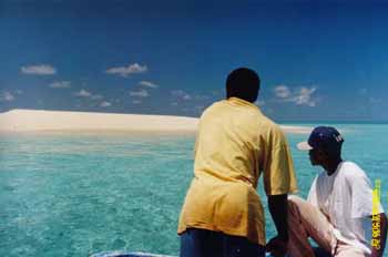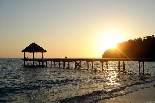 白い砂の小島はリゾート地として人気だ。そのところで海の色はとてもきれい。