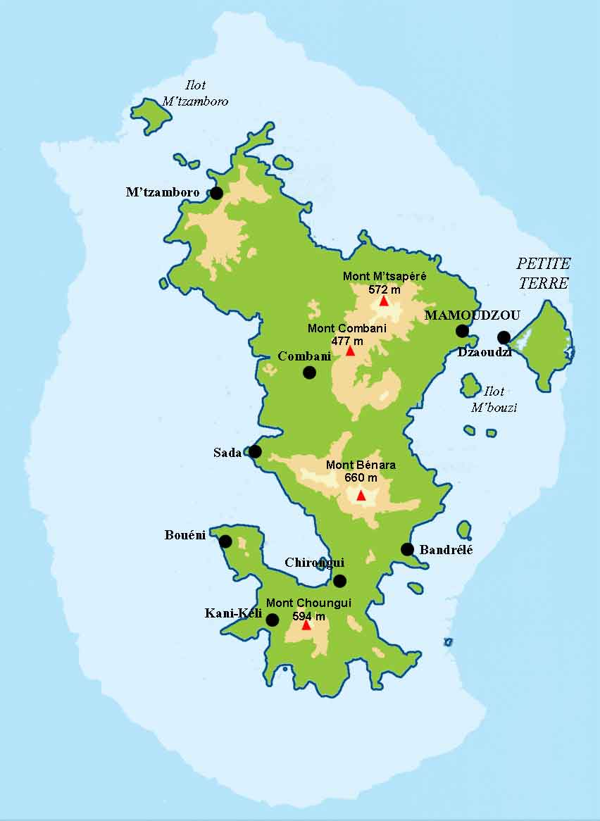 マヨットの1,100平方キロの礁湖は1,100平方キロは160キロのサンゴ礁に取り囲まれた。礁湖では約100つのサンゴでできた小島がある。一番広い島の形は裏返しにタツノオトシゴをみたい。熱帯の気候がある。だから植物はとても発達した。マヨットの人口は若い。2002年に16万人がいた。62%が25歳以下だった。